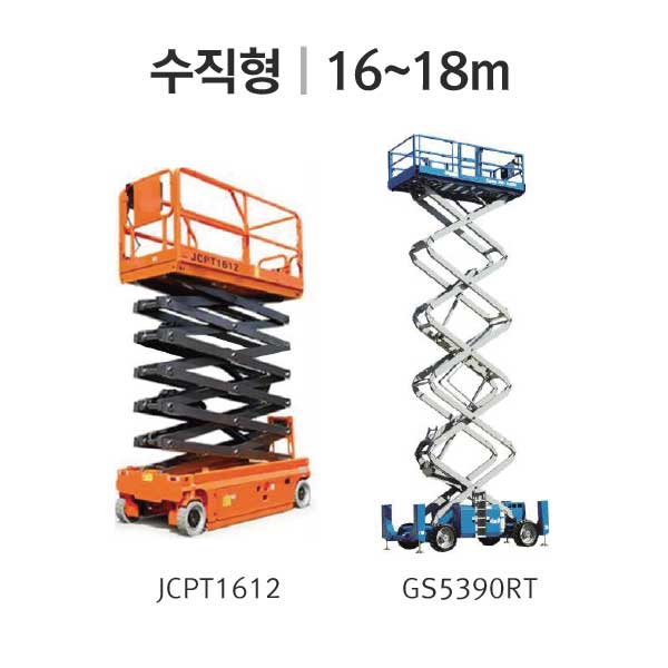 ①JCPT1612: (작업높이)15.7M, (적재중량)200KG, (동력)배터리