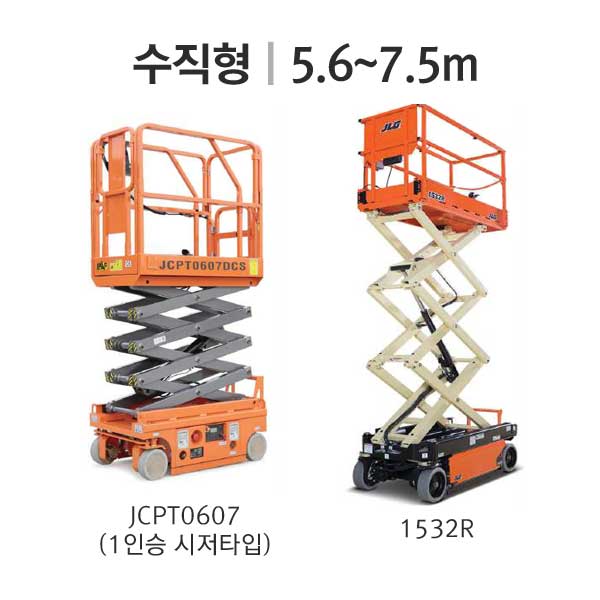 ①JCPT0607: (작업높이)5.6M, (적재중량)240KG, (동력)배터리