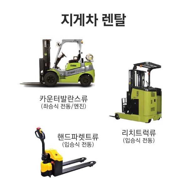 ①CLARK: (인상높이)2~3.2M, (적재중량)2~3.2TON, (동력)LPG/엔진